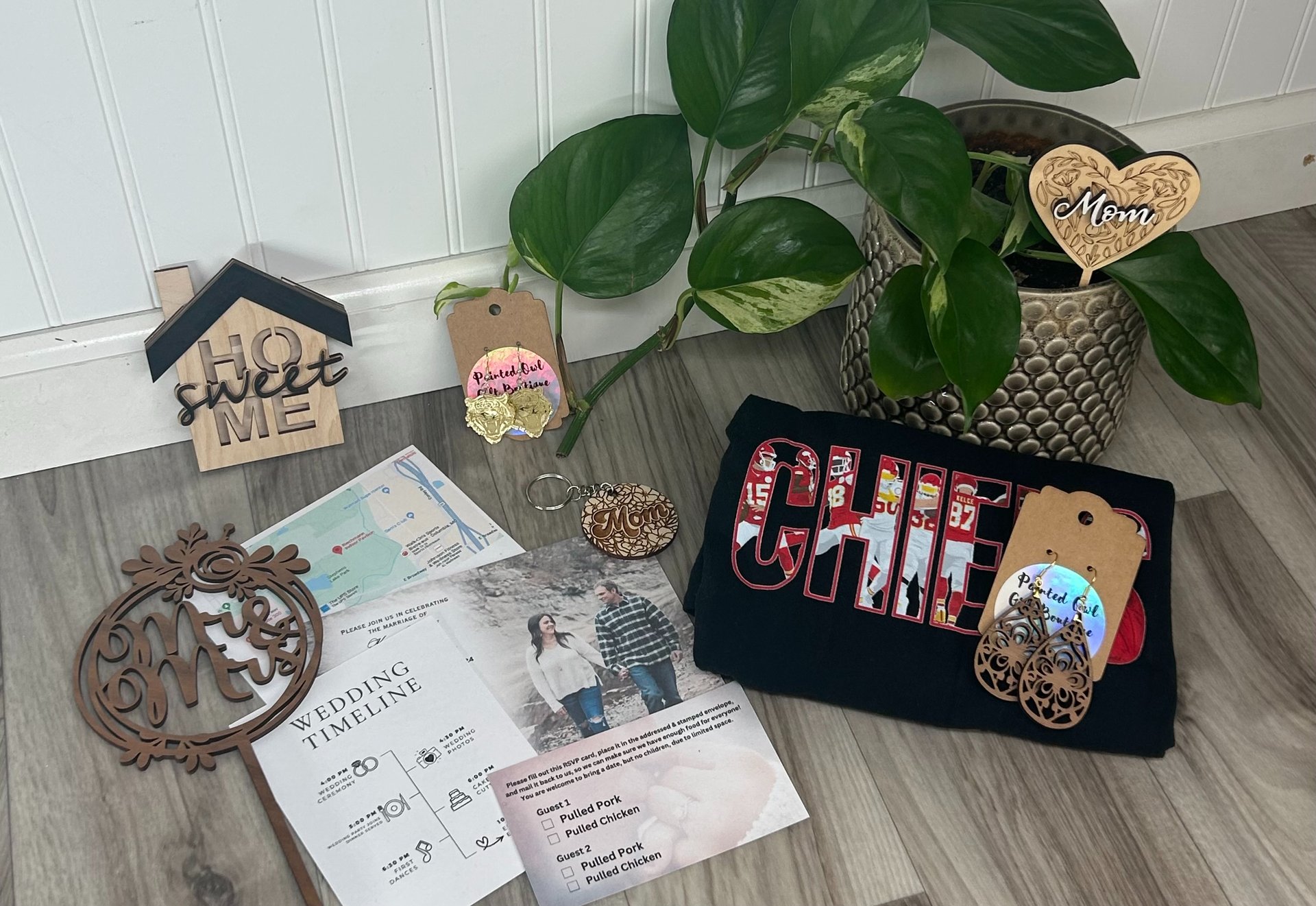 Whether you’re planning an unforgettable event, searching for a one-of-a-kind gift, or looking to add personalized flair to your everyday items, I offer a wide range of creative services to bring your ideas to life. From customizable laser cut and engraved products to hand-painted décor, every item is thoughtfully made to reflect your style, your story, and your vision.